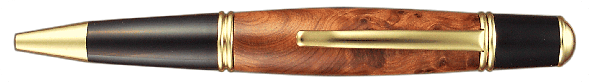 (3) The third pen has a Gold finish, and a Thuya Burl body. The pen is just over 0.62" in diameter at the widest point.